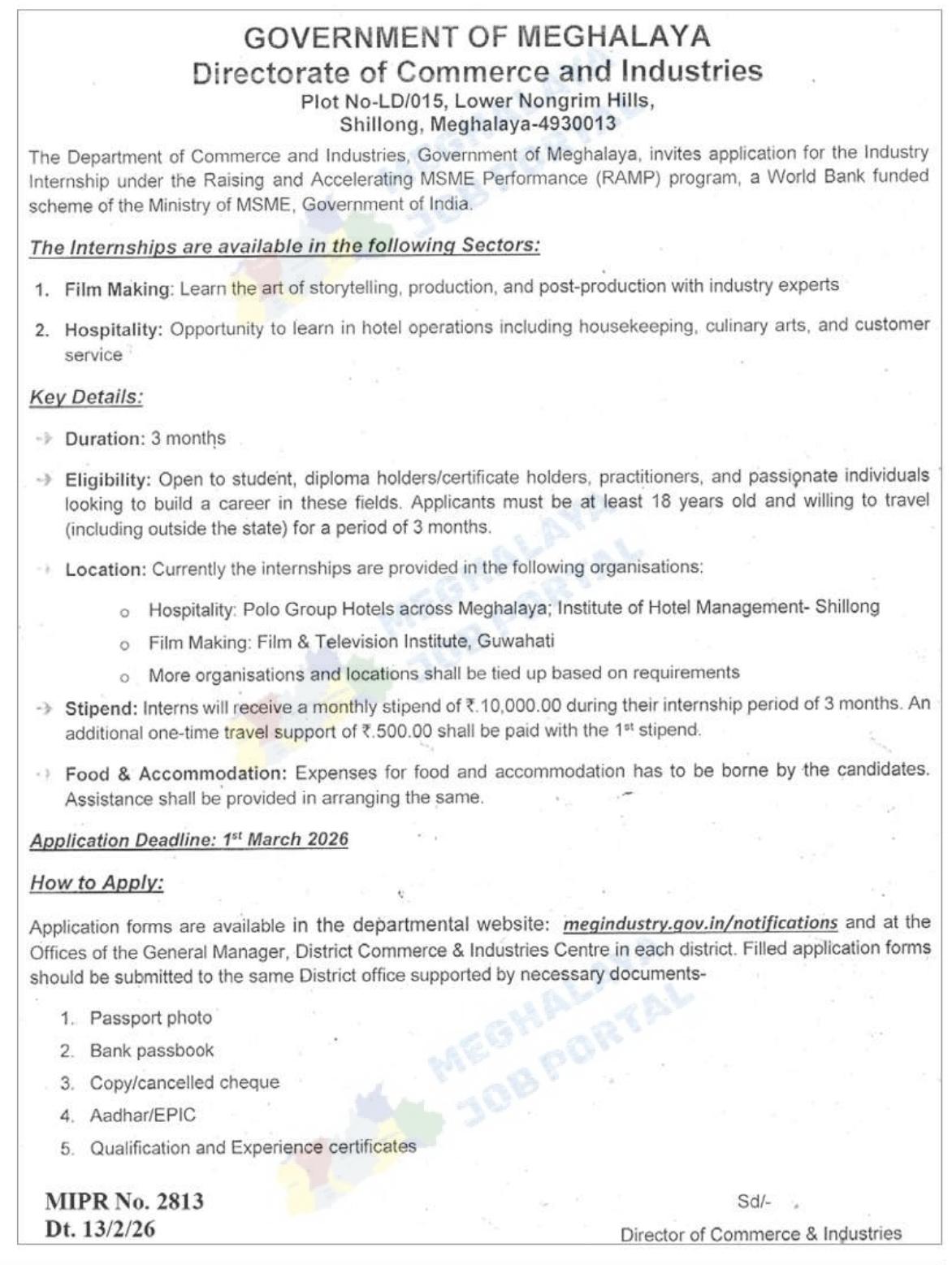 How to Apply for Director of Commerce & Industries Meghalaya Internship 2026