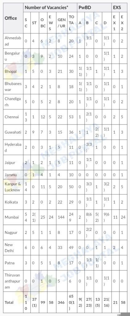 This year, RBI will fill 650 posts in different offices across India. Mumbai has the highest number of seats. Other cities like Shillong, Chennai, Kanpur, Lucknow, Guwahati, and Delhi also have good openings.